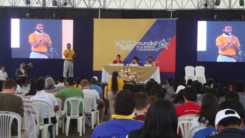 Estimados hermanas y hermanos del mundo, siempre con el vivo deseo de levantar una conciencia ecológica, que encuentre en el ser humano el principio de cambio de toda nuestra sociedad, el Levantamiento Juvenil Tao, ha sido invitado a el 18 Festival mundial de la Juventud de los estudiantes, a llevarse a efecto en la ciudad de Quito, espacio en el cual, se congregaron delegaciones juveniles de más de 83 países de los 5 continentes, con más de 8.000 representantes de grupos progresistas, que acudieron a levantar una unidad mundial anti Imperialista, anti capitalista y sobre todo, una proclama de la libertar de los trabajadores en todo el mundo. Se oyeron conferencias, conversatorios, foros y eventos artísticos, donde como es preciso, el Levantamiento Juvenil Tao, tuvo una delegación de Monjes que viajaron desde el Templo Vegetal SAKROAKUARIOS a acudir a este llamado por la libertad de los Pueblos, que acompañados por un nutrido núcleo de hermanos Taoístas del Ecuador, quienes estuvieron aportando en estos espacios una visión concientiva Taoísta del cambio a una nueva era de un renacer social, político, Económico y sobre todo Espiritual.