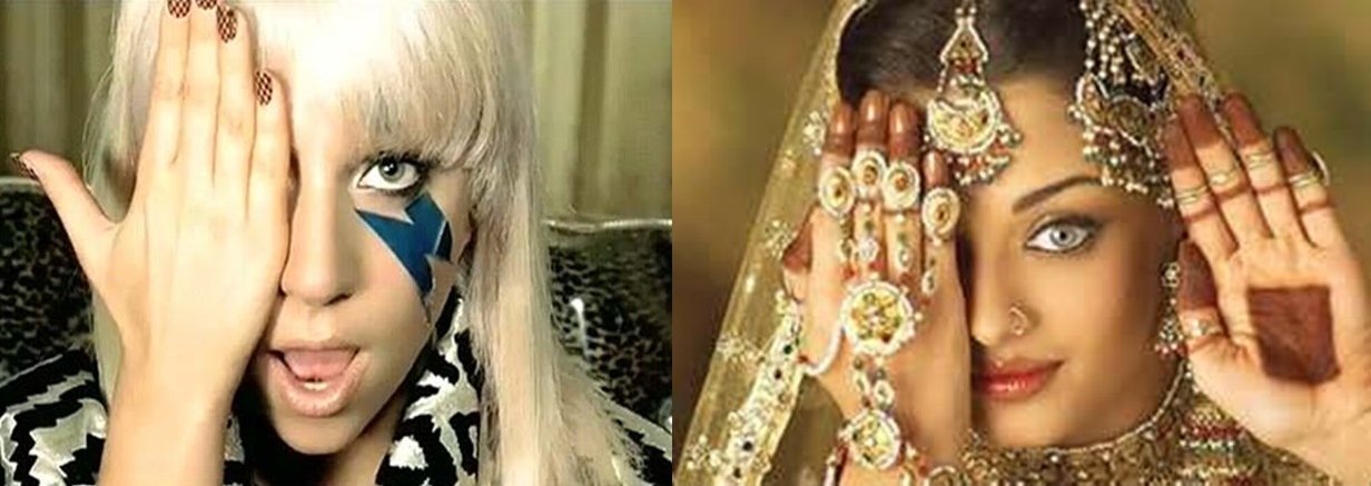 Lady Gaga y Aishwarya Rai Bachan haciendo el signo iluminati