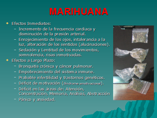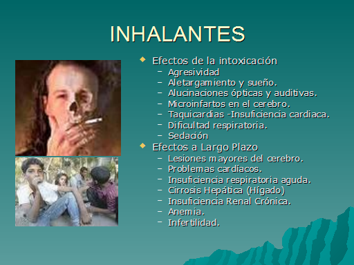 paso a este escabroso camino de los drogo-dependientes con cigarrillo, el alcohol, la cafeína…. Entrando ya a el colegio se presentan las oportucidas de conocer mas de ese mundo que le han dicho que es terriblemente malo y que cuando conoce a un compañero “mariguanero” y ve un muchacho como los otros, solo ke es mas arriesgado, conteston, irreberente, empero el tipo o la tipa hasta buena gente resulta, empieza el o la incauta criatura a acercarse mas a ese abismo que ya no le párese peligroso… hasta que satán le empuja a que se de la ocación y los peores justifican sus malas deciciones echándole la culpa a los problemas familiares, económicos o académicos, como si “dándose por la cabeza” como así dicen, se fueran a solucionar, tal razonamiento es una total torpeza, porque por mas duro que se den, siguen con su vida pero ahora peor, porque si sobrios no han encontrado solusel, mucho menos trabados, estupidizados, embrutecidos, bestializados, con la energía de los rebeldes luzbelicos… hay otros tontos que dicen “que por probar”…. Estos ni justifican la bestialidad de lanzarse a un abismo, pues sepan estimados seres que leen estas puvlikaseles ke una puerta que se abre jamás se cierra y esa cloaca de las drogas es un infernal puerta de perdición. Por ellos los inbitamos a que conoscamos al respecto de estos abismos y así podamos prevenir y no tener que lamentar.