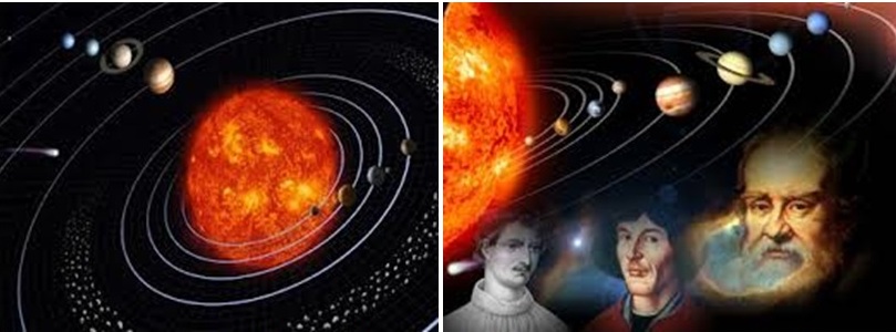 Galileo de acuerdo a los estudios de el savio copernico, a kien apoyo y presento al mundo la teoría del heliocentrismo que significa helio-sol y centro y que este es un modelo astronómico según el cual la Tierra y los planetas se mueven alrededor de un Sol relativamente estacionario y que está en el centro del Sistema Solar. Empero esto era bastante difícil de aceptar en akella época dado a que el pensamiento de el geocentrismo estaba radicado en la cabeza de la iglesia matolica quien se avalanso con la sangrienta inquisición romana a defender sus pensamientos y a ir en contra de lo planteado por GALILEO.