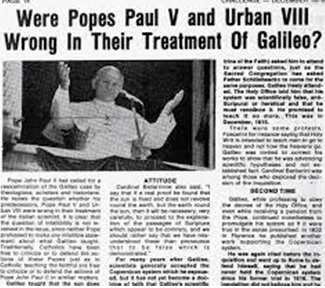 En 1992 la Iglesia “repudió” supuestamente su denuncia de Galileo. En un discurso de 1992, el asesino Papa Juan Pablo II adujo: