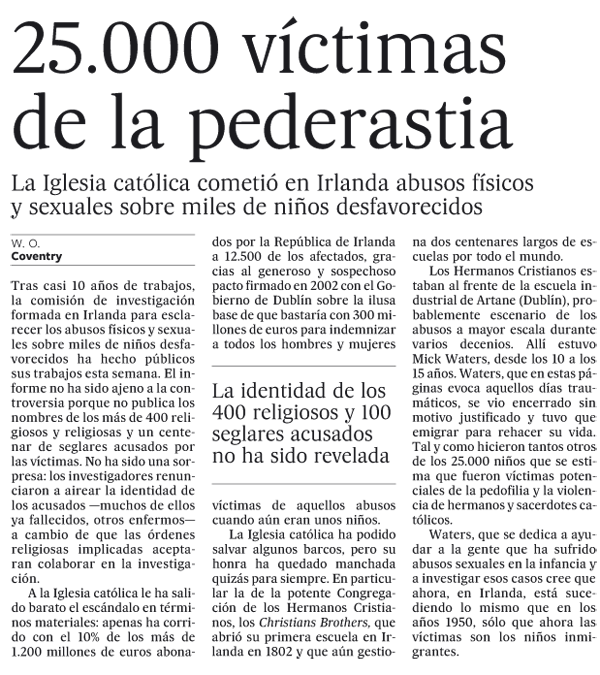 Sus informes hablan de casos en México y Gran Bretaña, investigaciones de jurados de instrucción en Estados Unidos e investigaciones gubernamentales desde Canadá hasta Irlanda y Australia que detallan cómo las políticas del Vaticano, que promueven la cultura del secreto y el miedo al escándalo, contribuyeron al problema.