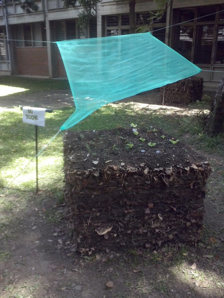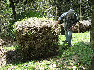 - Pada finalizar se coloca una capa de hojarasca se compacta muy bien, en caso de querer hacer una huerta en la parte superior de la paca se le puede agregar una capa de tierra, se compacta y de allí se retira el molde.